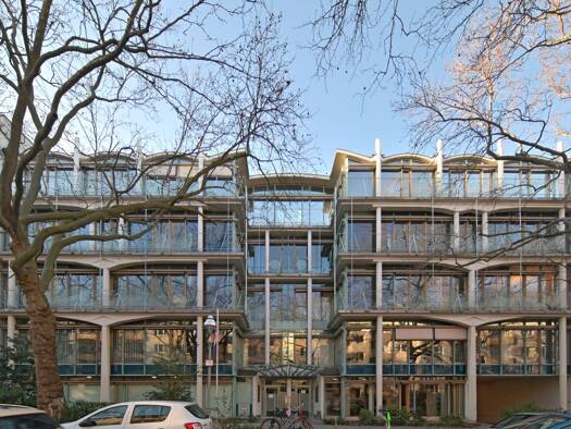 Die beiden 7-geschossigen Gebäude mit ihren markanten Fassaden aus Glas und Sandstein wurden über einen durchgehenden Flur in den Obergeschossen intern miteinander verbunden. Grundsätzlich ist eine h...