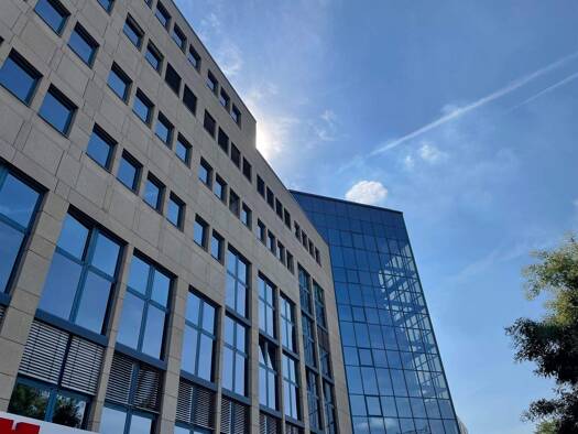 Das Bürogebäude mit einer Fassade aus Naturstein besticht durch seine moderne Architektur. Die repräsentative Eingangshalle sowie die technische Ausstattung des Hauses lassen keine Wünsche offen.