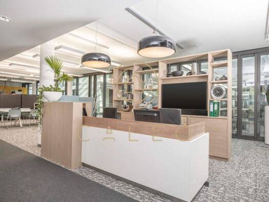 Durch große Fenster und weiße Möbel, wirken die Arbeitsbereiche hell und einladend. Dies wird durch stylische Holzdetails verstärkt, so dass Sie von optimaler Produktivität profitieren. In näherer Um...