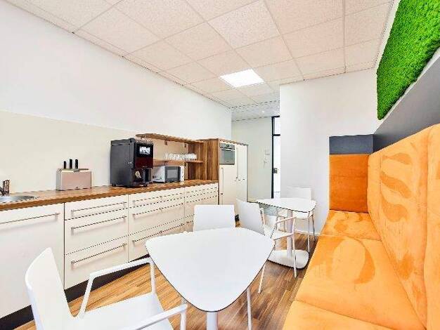 Dieser Flexspace besticht durch moderne Ausstattung und durchdachtes Design. Helle, offene Arbeitsbereiche fördern Kreativität, während der Relax Room und die großzügige Terrasse für Entspannung sorg...