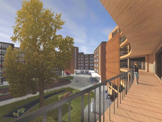 Bis Ende 2026 entstehen zwei hochmoderne Bürogebäude mit ca. 18.000 m² samt Tiefgarage und Parkhaus auf einem grünen innerstädtischen Grundstück. Das innovative Gebäude wird in U-Form erbaut und ergä...