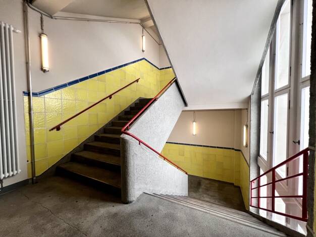 Der ehemalige Fleischverarbeitungsbetrieb wurde von 1927 bis 1930 erbaut, 1995 entkernt und 2020/2021 umfassend saniert. Der seit 1978 unter Denkmalschutz stehende Stahlskelettbau wurde mit rotem Kli...