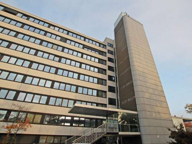 Das achtgeschossige Bürohaus verfügt über eine vorgehängte Kunststeinfassade sowie über eine hauseigene Tiefgarage in den beiden Untergeschossen. Besucher und Nutzer werden in einer raumhoch verglast...