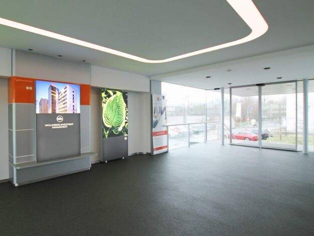 Das 8-geschossige Bürogebäude wurde 2008 / 2009 revitalisiert. Der gesamte Eingangsbereich erstrahlt in warmen Farben, die sich im gesamten Gebäude wiederfinden.