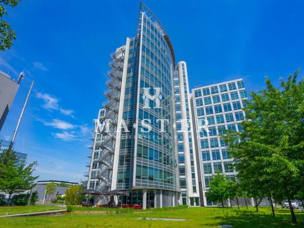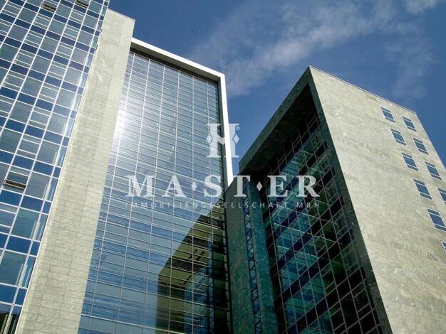 Mit seinen vier Gebäudeteilen bietet der 8-stöckige Bürokomplex neben einer imposanten Architektur mit Alu-Glas-Fassade (mit Sonnenschutzverglasung) auch alle Möglichkeiten für die Mieter des Hauses ...