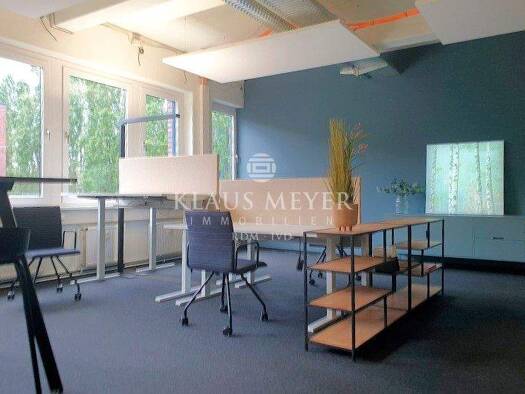 Das Bürogebäude, in dem sich die Fläche befindet, wurde 1984 mit einer Rotklinkerfassade und grünen Alu-Fenstern voll unterkellert und mit eigener Tiefgarage sowie Außenstell-plätzen auf einem Parkde...