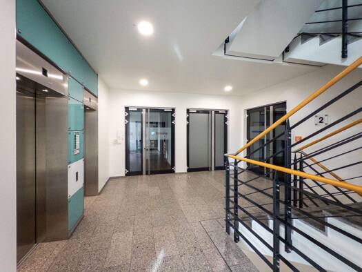 Die Bürofläche, ist im 2. OG eines Büro- und Geschäftshauses. Ein Personenaufzug ist vorhanden, der bis in die Etage führt. In dem Gebäude befinden sich eine Lidl-Filiale, eine Sportsbar u. Wettannah...
