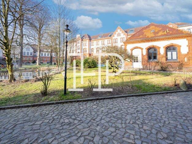 Die Fassaden des Gebäudes bestehen aus mehrgeschossigen Rotklinkerbauten mit verzierten Einzelelementen, die dem Objekt einen historischen Charakter verleihen. Der Charme des ehemaligen Fabrikschloss...