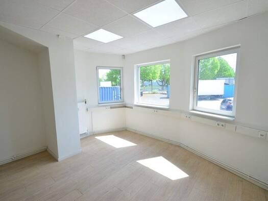 - Renoviertes und großzügiges Einzelbüro - Gewerbe-Laminatboden in der Farbe Eiche - Große Fenster sorgen für viel Tageslicht - Moderne LED-Deckenbeleuchtung - Frisch renovierte getrennte Damen- und ...