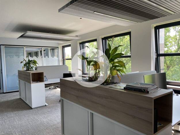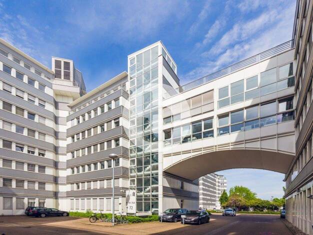 Das 10-geschossige Gebäude wurde 1973 errichtet. Die großen Fensterflächen lassen die Räume hell und freundlich erstrahlen. Von der Tiefgarage oder dem zentralen Empfangsbereich werden die Etagen sow...
