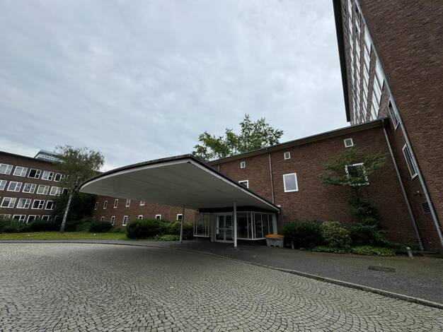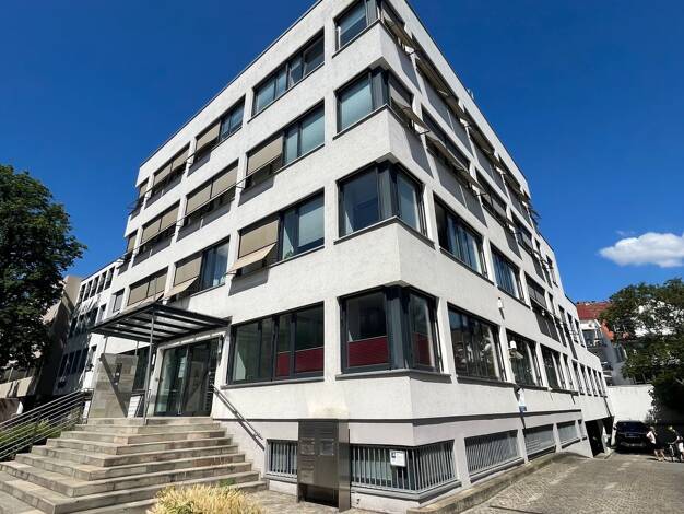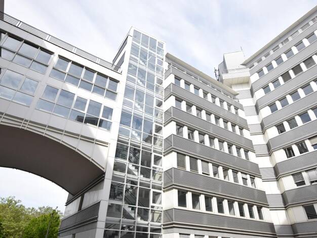 Das 10-geschossige Gebäude wurde 1973 errichtet. Die großen Fensterflächen lassen die Räume hell und freundlich erstrahlen. Von der Tiefgarage oder dem zentralen Empfangsbereich werden die Etagen sow...