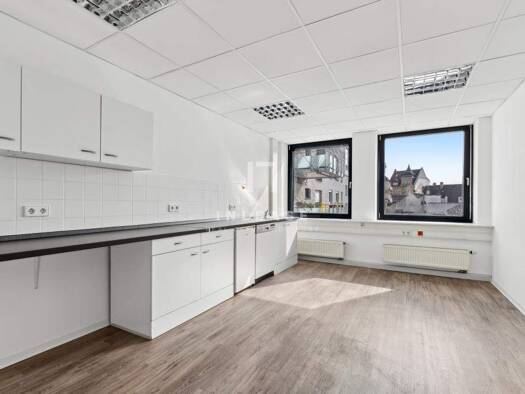 Komfortabel geschnittene Bürofläche mit einem Mix aus Sichtbarkeit, Zentrumsnähe und Arbeitsplatzkomfort. Über den Bürozugang erreichen Sie einen offenen Empfangs-/Arbeitsbereich. Die Büroräume sind ...