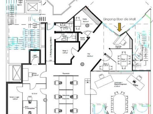 Objektbeschreibung 19 Räume mit insgesamt 747 m². XXL-Besprechungsraum, Teeküche und getrennte Damen und Herren WC-Anlagen. Repäsentatives Gebäude mit wunderschönem Treppenhaus. Raumaufteilung 19 Räu...