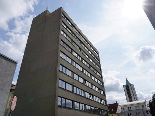 Der repräsentative Gebäudekomplex wurde Ende der 1990er Jahre als attraktiver Neubau realisiert und zeichnet sich durch ein offenes, transparentes Design aus. Besonders auffällig sind die klar strukt...