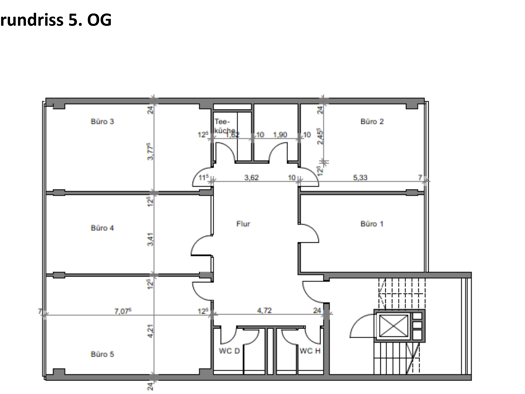 Es handelt sich um ein gepflegtes fünfgeschossiges Bürogebäude. Über das Treppenhaus und den Personenaufzug gelangen Sie in die vakanten Büroflächen im 2. Obergeschoss. Die Räumlichkeiten verfügen üb...