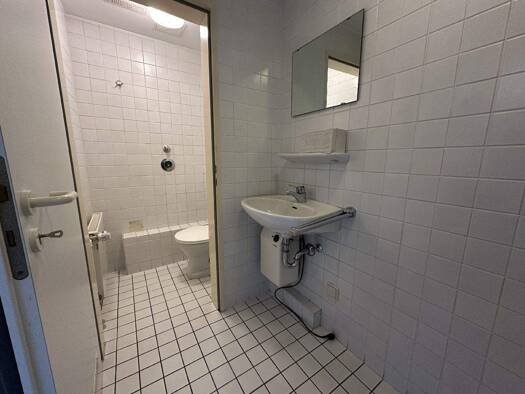 Das Büro liegt im Erdgeschoss eines gepflegten Mehrparteienhauses und ist über wenige Stufen begehbar. Auf ca. 128 m² finden sich der Eingangsbereich, ein großer Büroraum mit einer Küchenzeile, ein k...