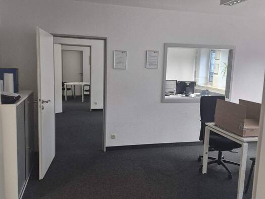 Das Büro befindet sich in der ersten Etage eines Wohn- und Geschäftshauses. Im Erdgeschoss befindet sich ein Friseursalon. Über der Einheit befinden sich mehrere Wohnungen.