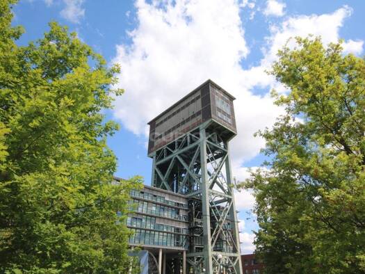 Die ehemalige Minister Stein-Zeche mit Förderturm (Hammerkopf) aus dem 19. Jahrhundert ist ein Wahrzeichen Dortmunds. Im 1999 nachträglich angebauten, länglichen Unterbau befinden sich heute moderne ...