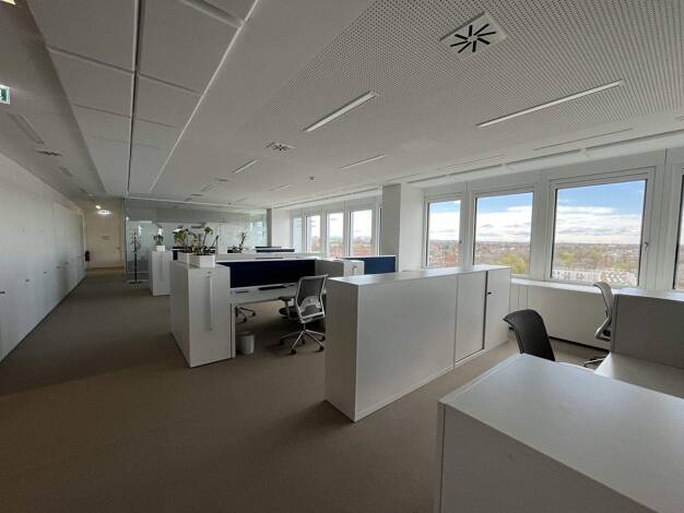 Es handelt sich um ein Bürogebäude mit Baujahr 2004, welches einen U-förmigen Grundriss aufweist. Die Gebäudehöhe beträgt ca. 29 Meter und ist unterteilt in 7 Etagen. Die lichte Raumhöhe beträgt im B...