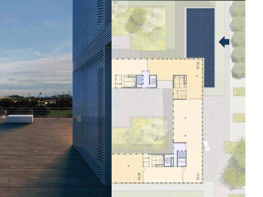 - Modernste Architektur verbunden mit dem Element Wasser - Gebäudezugänge mit berührungsloser Schließung - 3 gleichwertige Treppenhäuser, je 2 Aufzüge - Deckenfluter mit Präsenzsteuerung - Flexible u...