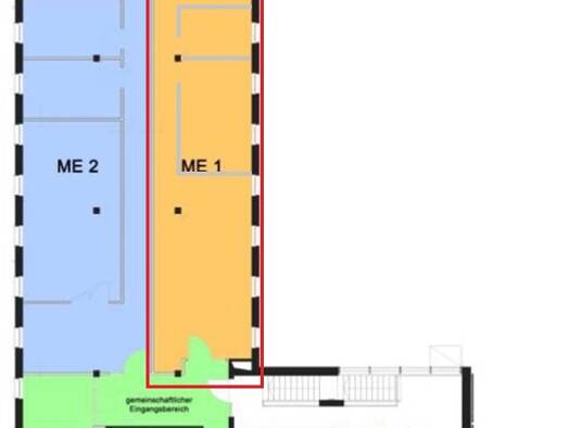 Das Büro hat eine Gesamtfläche von 114,98 m² und befindet sich im EG des Hauses. Das Büro besteht das aus einem Eingangsbereich, einem lichtdurchfluteten Großraumbüro mit Zugang zu einer kleinen Terr...