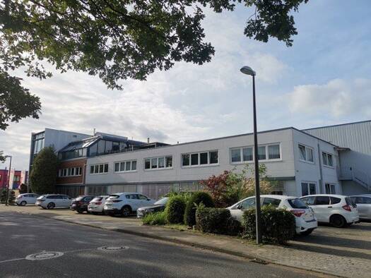 Gewerbeimmobilie mit Hallen- und Verwaltungsflächen Zu vermieten sind Büroflächen im Obergeschoss: Eingangsbereich, Empfang, mehrere Büroräume, Sozial/Sanitär, Archiv.