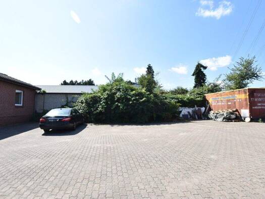 Das gemischt genutzte Gebäude stammt aus dem Jahre 1979. Der zweigeschossige Baukörper mit Klinkerfassade fügt sich in die Umgebungsbebauung ein. Das Gelände ist umzäunt und kann mit PKW und LKW befa...