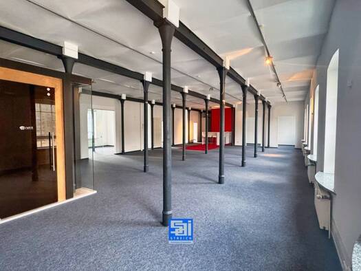 Im Erdgeschoss eines repräsentativen Gebäudes befindet sich eine großzügige Gewerbefläche mit einer Gesamtfläche von 534 m², die sich optimal in 410 m² modern gestaltete Büroflächen (teilbar ab 262 m...