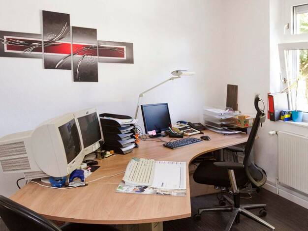 Insgesamt handelt es sich um ein Wohn-/Geschäftshaus mit Arztpraxen, Wohnungen und 2 Ladenlokalen. Das linke wird durch eine Hausverwaltung genutzt und dies soll ebenso als Büro / Verkaufsfläche (kei...