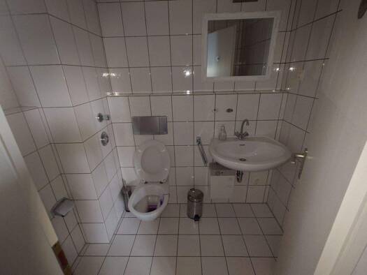 Das Gewerbeobjekt befindet sich im Erdgeschoss eines Wohngebäudes und verfügt über ein dazugehöriges Kellergeschoss. Die WC-Anlagen sind im Kellergeschoss des Gebäudes zu finden.