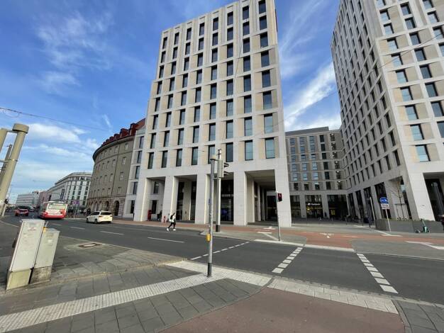 Das 7-geschossige Eckgebäude besteht aus zwei getrennten Bereichen: - Wohnen (Erschließung über die Seitenstraße - Gewerbe (Ausrichtung zur Hauptstraße) Der Gewerbebereich wird über die Hauptstraße e...
