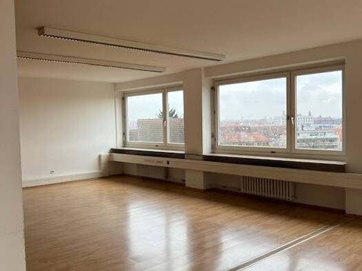 Objektbeschreibung Bürogebäude mit 7 Etagen in zentrale Lage, unmittelbar am Plärrer und der Rosenau. Aufzug und Tiefgarage vorhanden Raumaufteilung 6.und 7. OG mit je ca. 198 m²