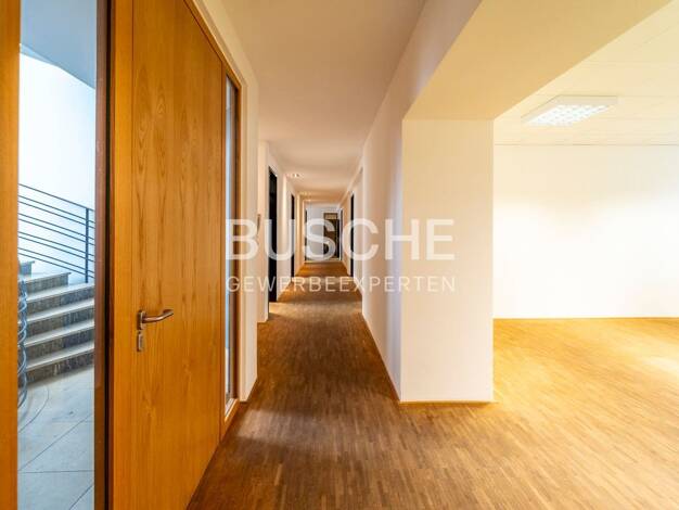 Diese ansprechende Bürofläche im Obergeschoss überzeugt durch eine gelungene Kombination aus Funktionalität, Komfort und angenehmer Arbeitsatmosphäre. Auf ca. 229 m² stehen Ihnen sieben helle, großzü...