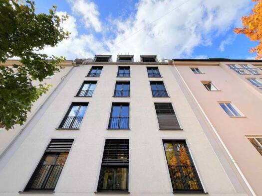 Fünfgeschossiger Gebäudekomplex mit schön gestalteten Grünflächen im Außenbereich. Die beiden Gebäudeflügel sind verbunden durch ein großzügiges Treppenhaus. Sehr angenehm: Bodentiefe Fenster, eine R...