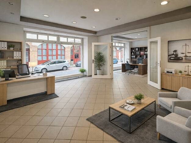 Diese Büroeinheit überzeugt durch einen großzügig gestalteten Empfangs- und Wartebereich, der einen repräsentativen ersten Eindruck vermittelt und ausreichend Platz für Kunden und Besucher bietet. Di...