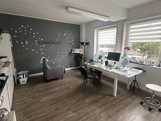 Das helldurchflutete Büro am Apostelweg 12 in Rahlstedt-Hamburg überzeugt durch seine großzügige Raumaufteilung, moderne Ausstrahlung und eine angenehme Arbeitsatmosphäre. Auf rund 100 m² verteilen s...