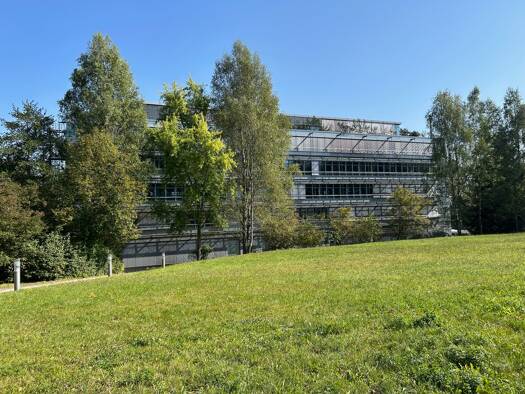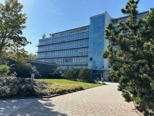Das freistehende Gebäude wurde auf einem nach Westen geneigtem Hang erbaut, weshalb auch die Untergeschosse zum Teil als vollwertige Büro- oder auch Produktionsflächen genutzt werden können. Der vier...