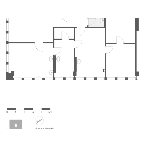 Es handelt sich um eine abgeschlossene Büroeinheit. Diese gliedert sich in 3 Büros sowie Teeküche und WC.