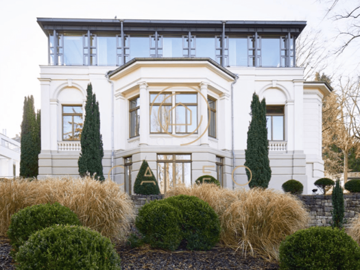 Die denkmalgeschützte Villa Sanssouci besticht durch ihren Stil des Spätklassizismus und ist mit prunkvollen Stuckdecke mit Blattgoldverzierungen, großzügigen Flügeltüren, herrschaftlichen Treppenauf...