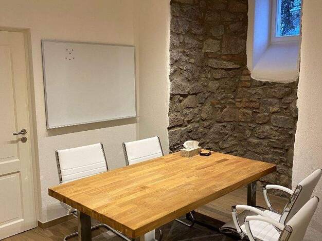 Das angebotene Büro ist klein (ca. 11 qm), hat jedoch eine weitere Abstell-/Nutzfläche hinter dem Eingangstor (ca. 30 qm), die ein Archiv oder eine Lagerhalle geeignet ist. Ein großer Keller (etwa 40...