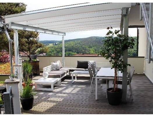 Diese wunderschöne Wohnung befindet sich in Berglage, OT Raigering am Ende einer ruhigen Sackgasse mit phantastischem Ausblick in die Umgebung. Eine große Terrasse mit Überdachung begrüßt sie im Eing...