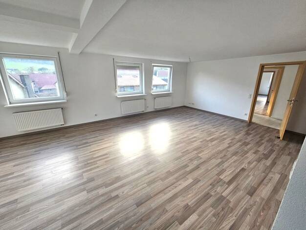 Wir vermieten eine helle, freundliche und neu renovierte Dachgeschoßwohnung. Sie befindet sich im ersten Stock eines Hauses mit drei Wohneinheiten, verfügt über ein Tageslichtbad, eine Küche und einen abschließbaren Kellerraum im Untergeschoß. Ein Pkw-Stellplatz ist vorhanden. Objektzustand: Erstbezug nach Sanierung