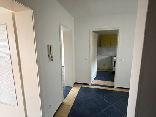 Die Wohnung befindet sich in einem Mehrfamilienhaus mit 6 Wohnungen. Die beiden Zimmer haben einen schönen Blick ins Grüne. Im Badezimmer befindet sich ein Anschluss für eine schmale Waschmaschine.