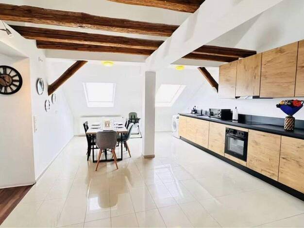 Helle 3-Zimmer-Dachgeschosswohnung mit Loggia und exklusivem Badezimmer Diese charmante Drei-Zimmer-Dachgeschosswohnung auf 90 Quadratmetern bietet modernes Wohnen mit einem besonderen Flair. Der großzügige, helle Wohn- und Essbereich ist offen gestaltet und sorgt für eine einladende Atmosphäre. Von hier aus gelangen Sie auf die Loggia, die einen wundervollen Außenbereich bietet - perfekt für entspannte Stunden an der frischen Luft. Ein großes Schlafzimmer rundet das Raumangebot ab, das durch s...
