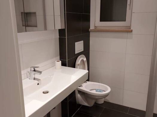 Die Wohnung liegt im 1. Obergeschoss. Bad und Küche mit Fliesen, in den sonstigen Räumen hochwertiger Vinyl-Bodenbelag im Holzdesign. Eine funktionelle Einbauküche inkl. Elektrogeräten (Kühlschrank m...