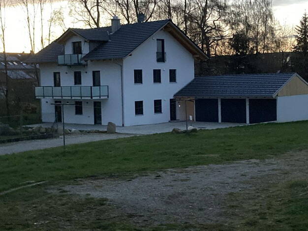Die Wohnung befindet sich in einem 3 Familienhaus, 1997 erbaut nach ländlichen Vorbild mit moderner technischer Ausstattung, Fussbodenheizung, Solar das die Ölheizung unterstützt. wir sind ca. 800 m vom Ort entfernt indem sich Einkaufsmöglichkeiten wie Bäcker, Metzger, kl.Edeka Bank, Schule, Gaststätte befindet, Größere Einkaufsmöglichkeiten u. Ärzte Apotheken unsw. befinden sich ca. 5-6 km entfernt in Haag od. Edling. Wasserburg ist ca. 10 km , Rosenheim ca. 33 km, München 45 km entfernt. Das ...