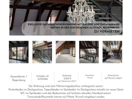 Objektbeschreibung Ihr exklusiver Wohntraum in Regensburg Stellen Sie sich vor: Sie öffnen die Tür zu Ihrem neuen Zuhause und betreten eine lichtdurchflutete Dachgeschosswohnung, die Geschichte und m...
