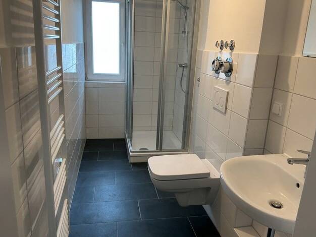 Renovierte 2-Zimmer-Wohnung mit Balkon im 2. Obergeschoss eines Mehrparteienhauses mit Fahrstuhl. Sie ist ausgestattet mit einem Wohnraum von dem Sie das Schlafzimmer, die Küche und den Balkon erreichen. Das großzügige innenliegende Bad erhält neue Wand- und Bodenfliesen, ein Wand-WC, einen Waschtisch sowie eine Dusche mit Duschabtrennung. Hier findet auch die Waschmaschine ihren Platz. In der Küche wird ein neuer Küchenfliesenspiegel angebracht. Die Wohnung wird frisch gestrichen und mit einem...
