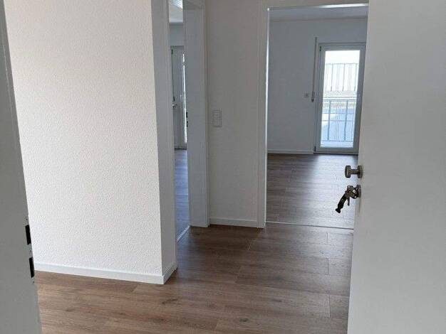 Zwei Schlafzimmer, Küche, Tageslichtbad, Flur, Abstellkammer und ein Wohnzimmer mit Zugang zum Süd-West-Balkon. Zur Wohnung gehört auch ein Kellerraum und ein gemeinsamer Fahrradkeller mit Zugang übe...