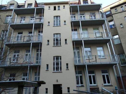 Das Haus mit 9 Wohneinheiten wurde umfangreich in 2023 kernsaniert. Hier gibt es einen Personenaufzug, welcher in jeder Etage bodengleich hält und auch in den Kellerbereich fährt. Diese Wohnung hat ein innenliegendes Bad mit Wanne und einer ebenerdigen Dusche. Hofseitig befindet sich der Balkon, welcher von der Küche, als auch vom Schlafzimmer aus betreten werden kann. Die Küche wurde mit einer Einbauküche ausgestattet. Die gesamte Wohnung verfügt über eine Fußbodenheizung. Die Wärmelieferung e...